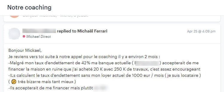 Regardez cet email reçu d’un client que j’ai eu en coaching :