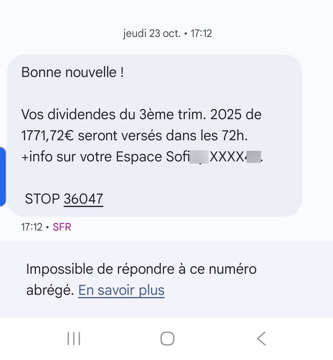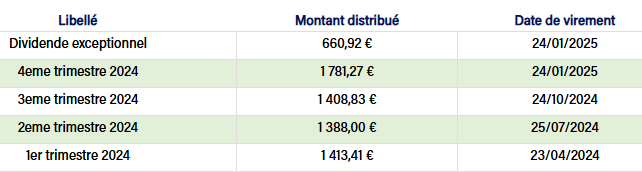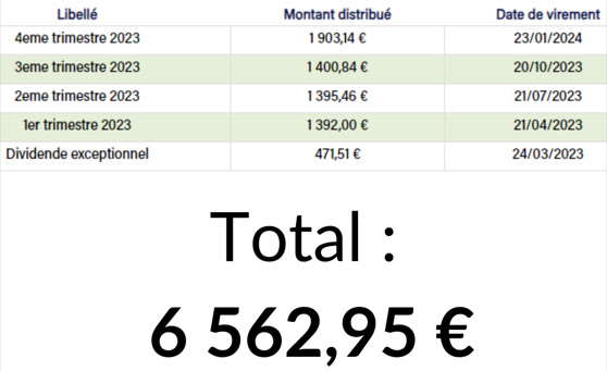 Voici les dividendes reçus pour l'une des SCPI que je possède :