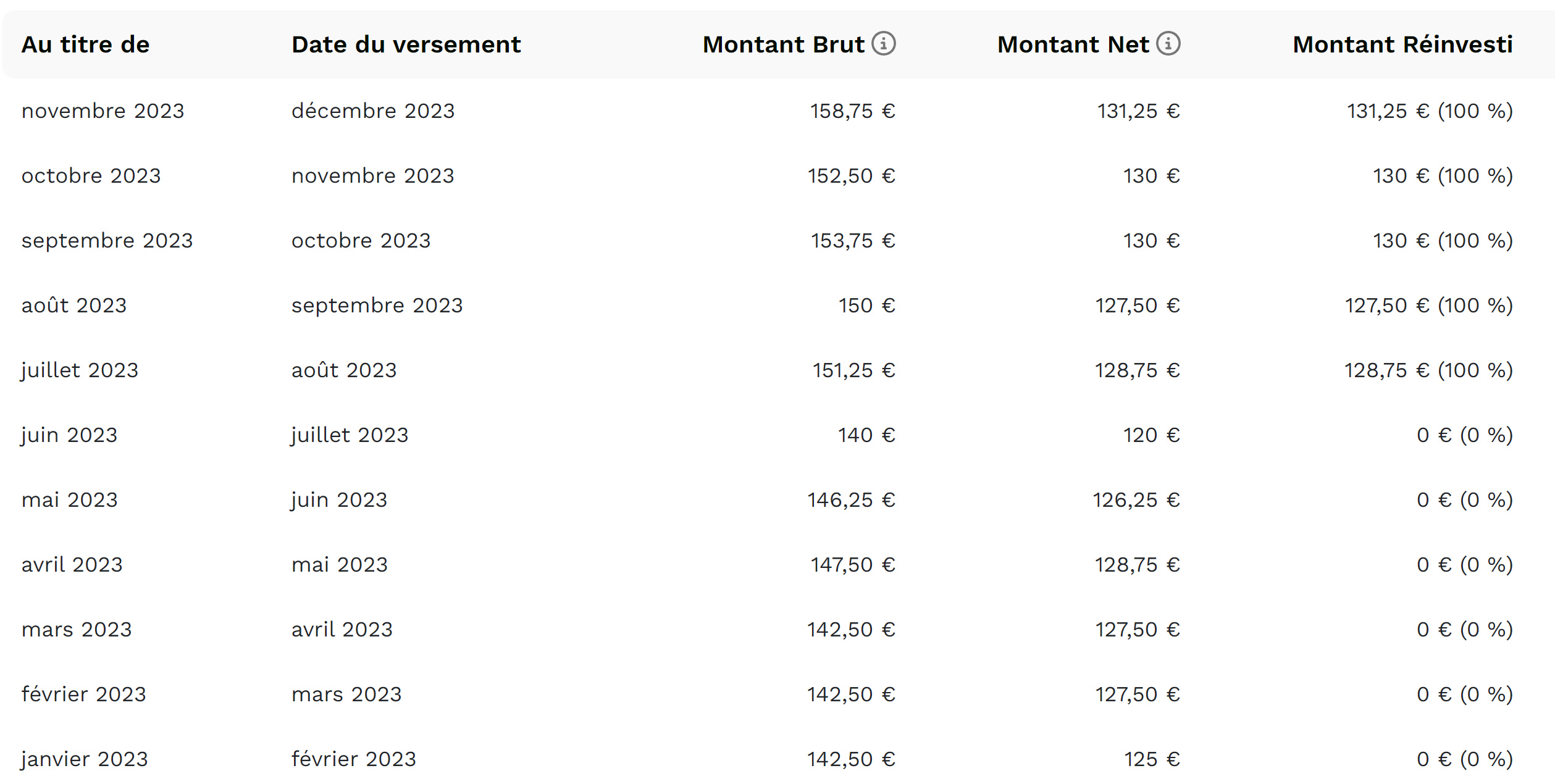 Peut-être que vous trouvez ce chiffre faible mais ce qu’il faut prendre en compte c’est que c’est un rendement net de toute dépense, vacance locative et gestion. Cela équivaut en rendement brut à du 7 à 9% dans l’immobilier physique et ce, sans lever le petit doigt.